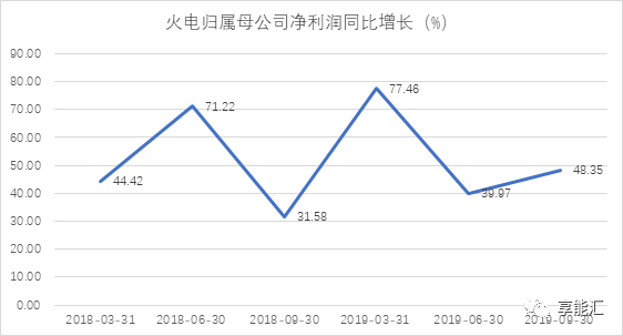 2019 年前三季度華能國際(5.700, 0.03, 0.53%)、華電國際(3.650, 0.01, 0.27%)、國電電力(2.290, -0.01, -0.43%)、大唐發(fā)電(2.420, 0.00, 0.00%)收入增速在0-10%,凈利潤除大唐發(fā)電之外前三季度均保持較高增長。收入增速的變化主要是受到電價同比提升和發(fā)電量增速回升的影響。