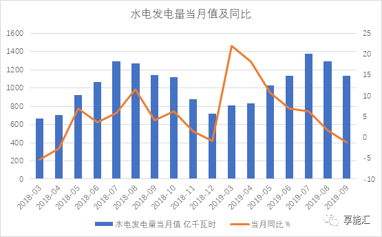 圖13:2018-2019年9月水電發(fā)電量及同比變化