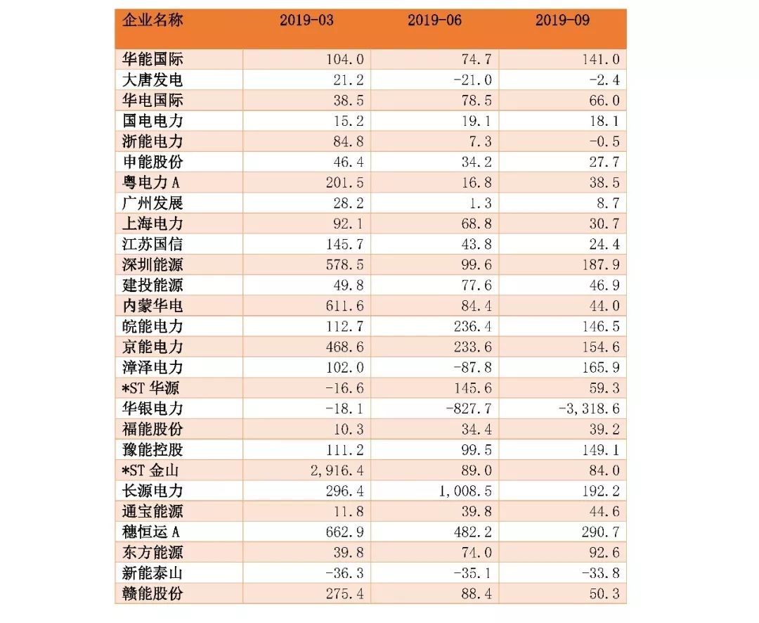 表1:火電行業(yè)主要企業(yè)凈利潤增長率