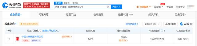 股東信息顯示,該公司由中國大唐集團(tuán)有限公司全資持股。(DoNews)