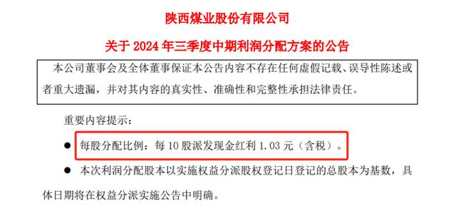 值得注意的是,就在收購(gòu)公告同天,陜西煤業(yè)還發(fā)布了2024年三季度中期利潤(rùn)分配方案。