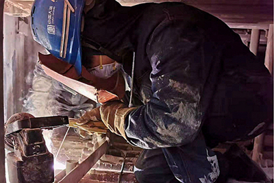 修復(fù)振打器磁軸,更換脫落的陰極線,對倒伏的陽極板進(jìn)行清理、恢復(fù)、固定,唐匯軍就這樣一樣樣地、默默無聞地做著,偶爾工作間隙里,他會開兩句玩笑,緩和一下枯燥和疲憊。出了爐子,吃個工作餐,耽誤不到半個小時,又立即扎進(jìn)了工作中,身邊的同事總是被他的工作態(tài)度激勵著。“不能偷懶耍滑,必須檢查到位,修必修好。”爬出爐子時已經(jīng)腰酸背痛,唐師傅依舊微笑得那么純粹。這項(xiàng)檢修工作持續(xù)了半個月,才得以很好完成。
