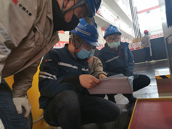 張博(左二)帶領(lǐng)QC科技參賽隊(duì)員進(jìn)行現(xiàn)場(chǎng)調(diào)速器控制原理學(xué)習(xí)
