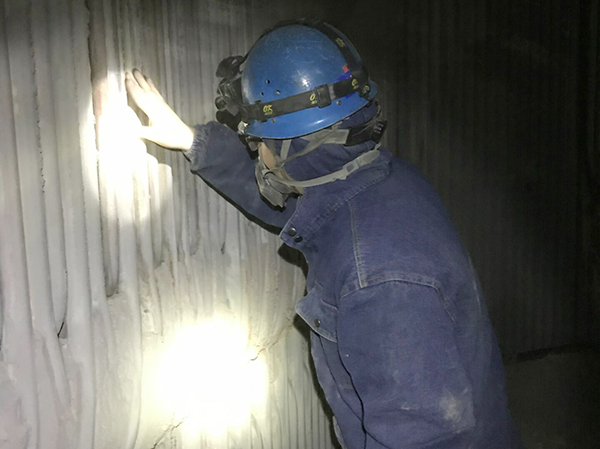 鍋爐受熱面防磨防爆是機(jī)組降非停工作的重頭戲,檢修期間張曉斌帶領(lǐng)鍋爐防磨防爆小組仔細(xì)治理鍋爐“四管”。他勤用手摸、勤用耳聽、勤用眼觀、勤用腦分析,逐項對“水冷壁、省煤器、過熱器、再熱器、頂棚”展開排查,不放過任何一個疑點,關(guān)健部位更是細(xì)中求細(xì);他勤于學(xué)習(xí),勤于總結(jié),對爐管結(jié)構(gòu)分布圖了然于胸,對易發(fā)生磨損部位、吹損、拉裂、水冷壁高溫腐蝕等重點部位進(jìn)行分類統(tǒng)計,記錄留存照片、數(shù)據(jù),通過歷次檢查結(jié)果分析判斷劣化趨勢,預(yù)判管道壽命,制定對應(yīng)措施。