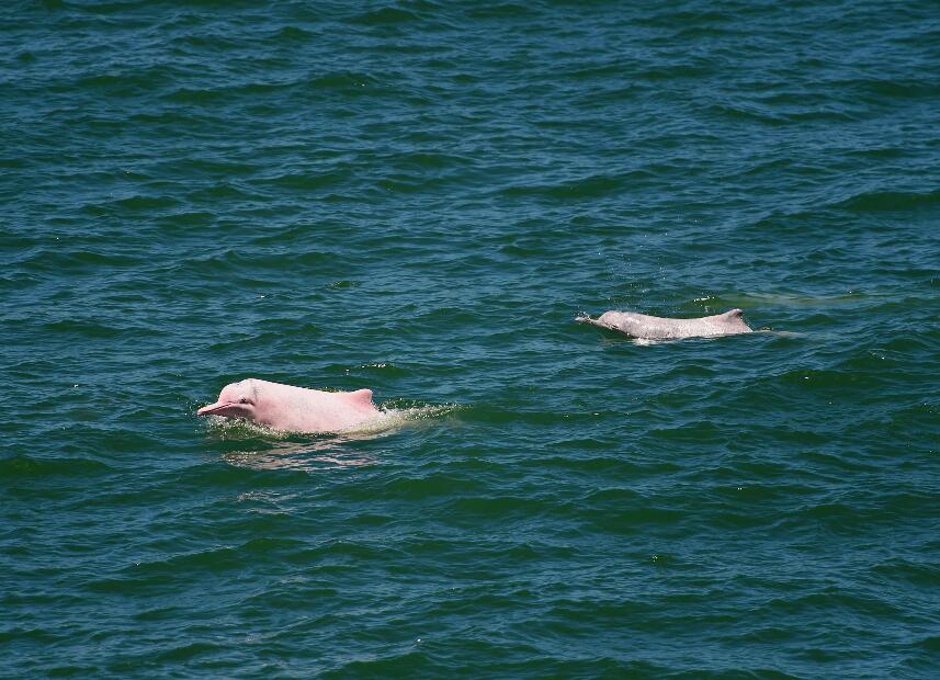 中廣核陽江核電基地海域嬉戲的中華白海豚