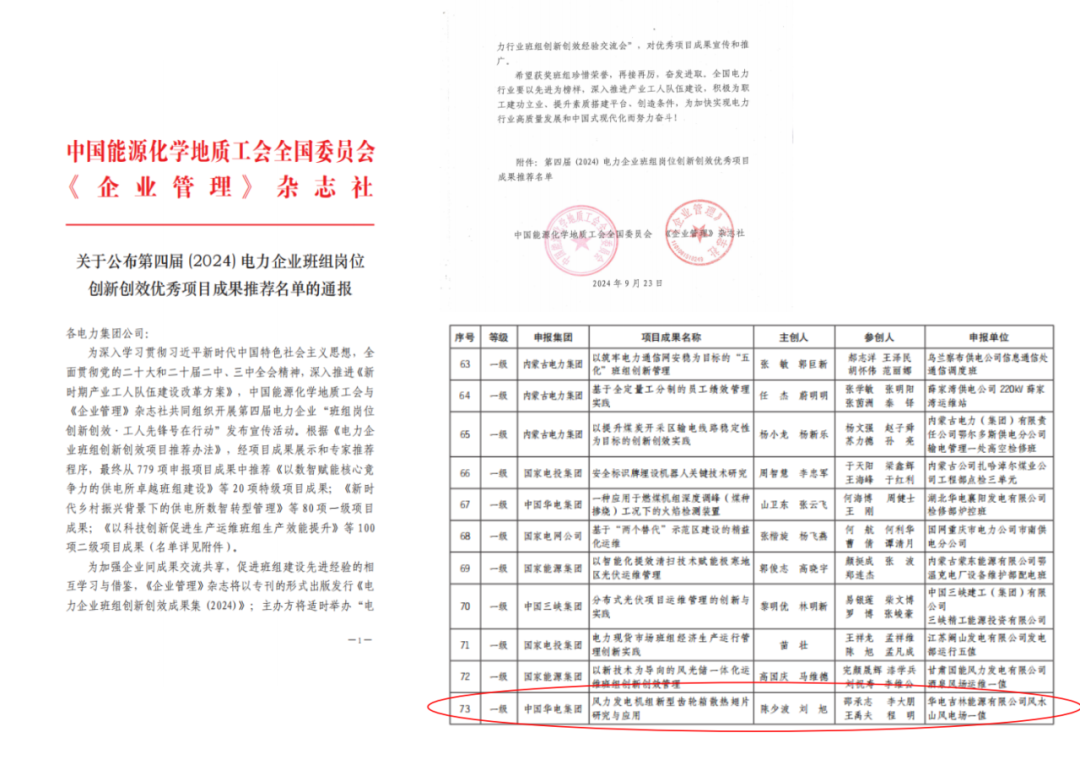 華電吉林公司一成果獲全國電力企業(yè)班組崗位創(chuàng)新創(chuàng)效項目成果一級獎