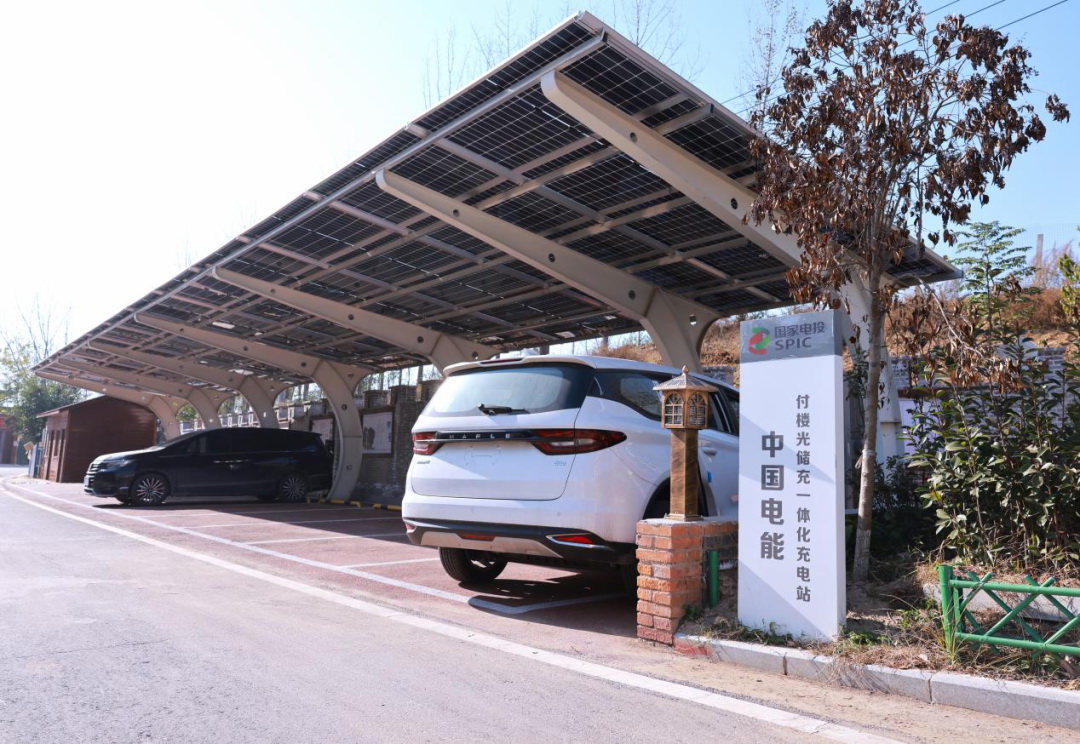 ▲中國(guó)電能在河南省蘭考縣付樓村建設(shè)的光儲(chǔ)充一體化充電站