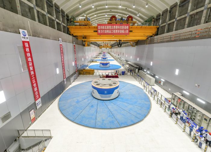 白鶴灘水電站百萬千瓦機(jī)組單機(jī)容量世界第一,其研制、安裝調(diào)試難度遠(yuǎn)大于世界在建和已投運的任何機(jī)組,被譽為當(dāng)今世界水電行業(yè)的“珠穆朗瑪峰”。在機(jī)組設(shè)計、生產(chǎn)、安裝過程中,三峽集團(tuán)牽頭聯(lián)合參建各方,提前制定各項措施、方案,嚴(yán)標(biāo)準(zhǔn)、強(qiáng)管理、重落實,通過多措并舉、精益管理、高效施工,掌握了關(guān)鍵核心技術(shù),取得了一個個行業(yè)內(nèi)首次,順利實現(xiàn)百萬千瓦機(jī)組順利投產(chǎn)發(fā)電。