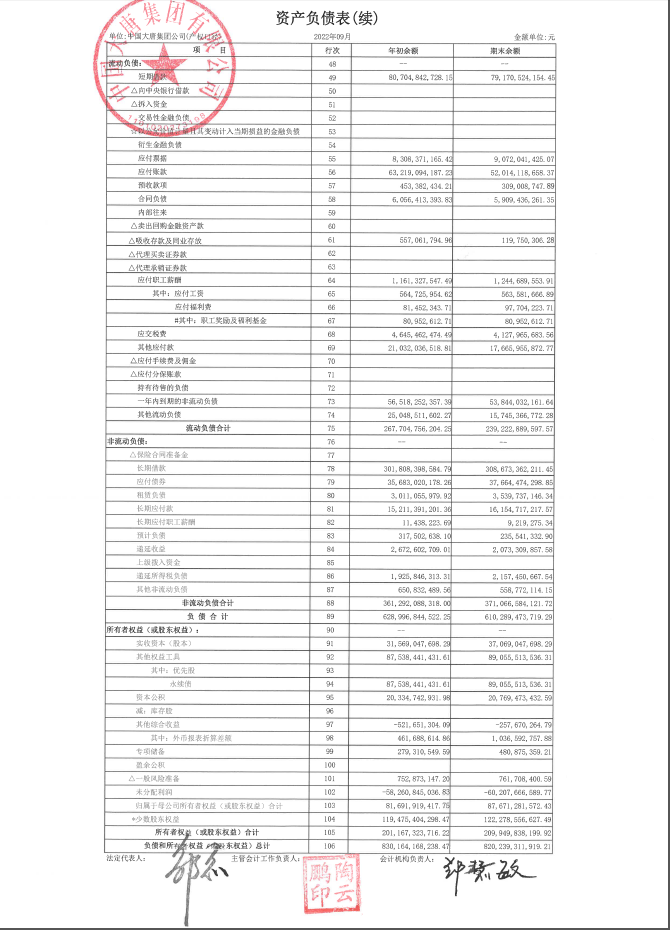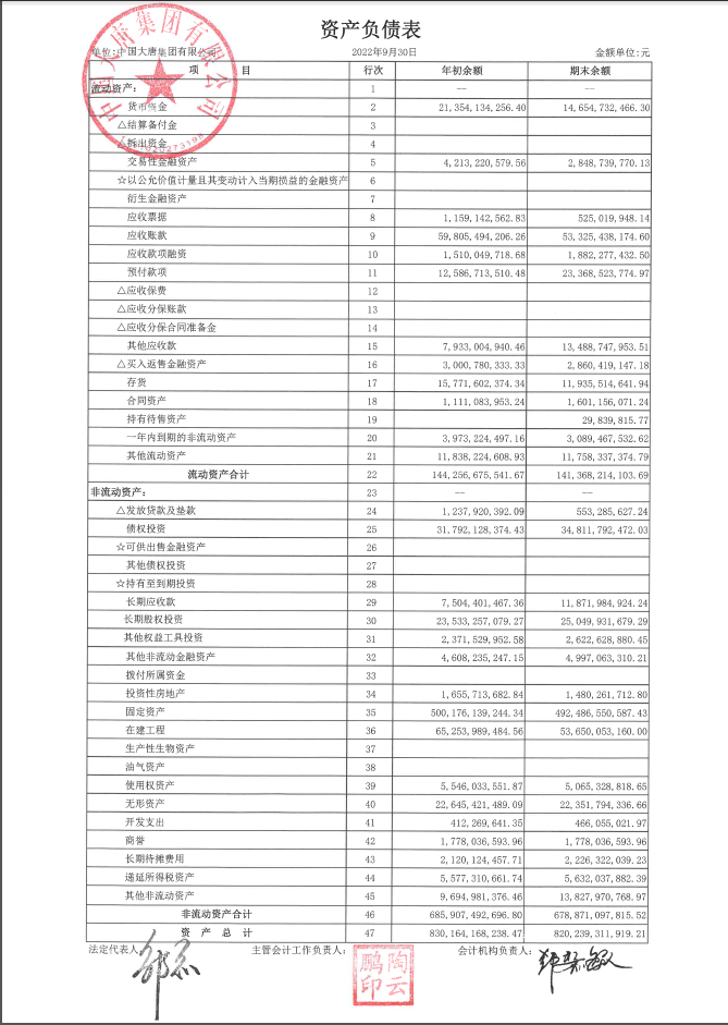 大唐集團(tuán)2022年三季財(cái)務(wù)報(bào)表