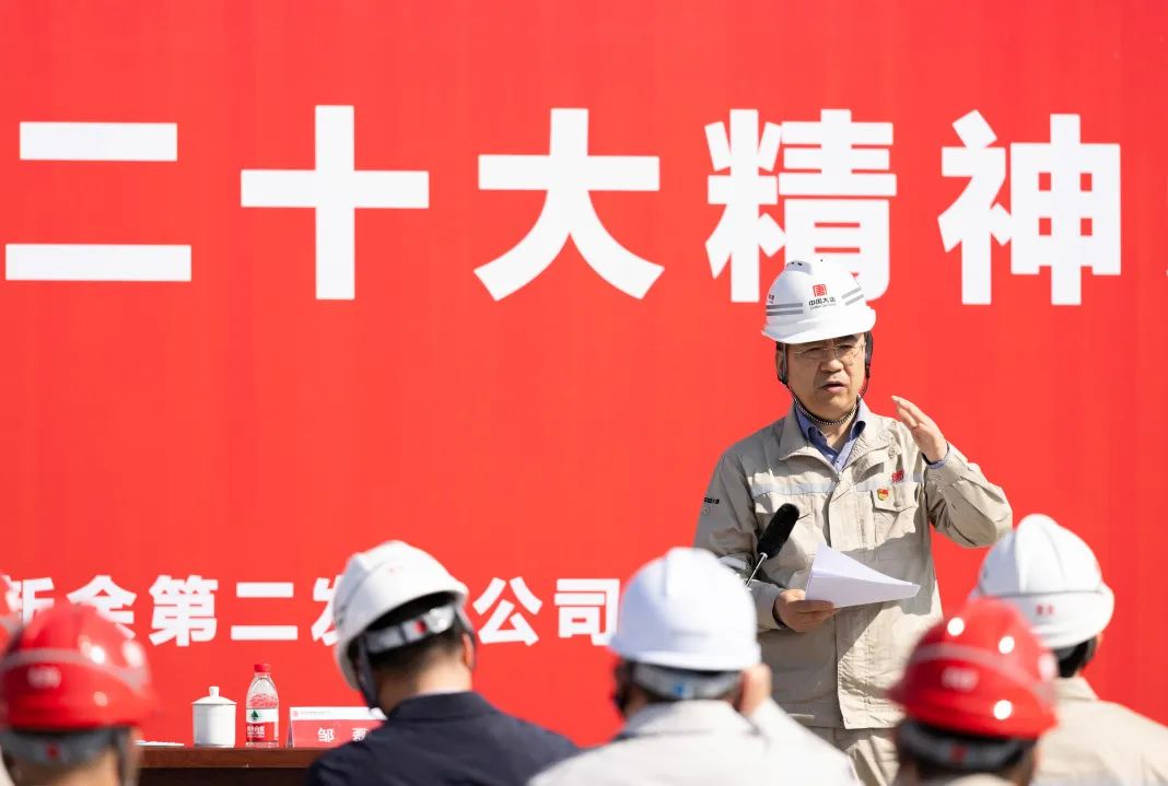 在工地現(xiàn)場的一片空地上,鄒磊與項(xiàng)目部干部職工、參與工程施工的建設(shè)和監(jiān)理單位職工面對面進(jìn)行交流,以鮮活的事例、通俗的語言、真切的情感對黨的二十大精神進(jìn)行了解讀闡釋,和大家一起共同學(xué)習(xí)了黨的二十大精神。鄒磊強(qiáng)調(diào),新余二期正值工程建設(shè)的關(guān)鍵時期,要切實(shí)抓好組織領(lǐng)導(dǎo)、宣傳宣講和學(xué)習(xí)培訓(xùn)工作,確保黨的二十大精神入腦入心。要用黨的二十大精神指導(dǎo)工程建設(shè)實(shí)踐,確保“兩不超、三個零”,做到“五嚴(yán)禁”,加快建設(shè)“四優(yōu)工程”,把新余二期建設(shè)成為人與自然和諧共生的低碳綠色轉(zhuǎn)型示范電廠,為江西省經(jīng)濟(jì)社會發(fā)展和社會進(jìn)步“提供清潔能源、點(diǎn)亮美好生活”。