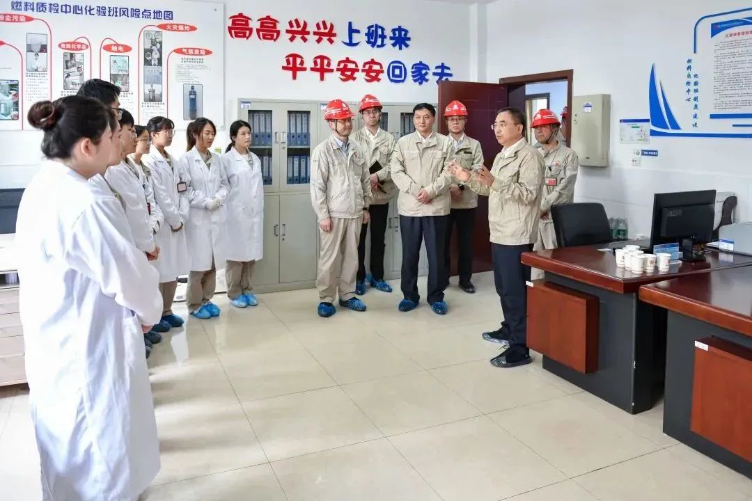 鄒磊走進(jìn)石柱發(fā)電公司質(zhì)檢中心化驗(yàn)班,與一線青年職工親切交流,仔細(xì)詢問(wèn)實(shí)驗(yàn)室安全管理重點(diǎn)工作,認(rèn)真了解實(shí)驗(yàn)人才隊(duì)伍建設(shè)、創(chuàng)新文化等情況。當(dāng)聽到這是由平均年齡26.5歲的青年組成的一支實(shí)驗(yàn)隊(duì)伍,鄒磊十分欣慰。鄒磊說(shuō),“看到你們這支充滿朝氣與活力的青年隊(duì)伍,把企業(yè)當(dāng)家園,把工作當(dāng)事業(yè),飽含對(duì)工作的使命感、對(duì)企業(yè)的認(rèn)同感,在崗位上默默奉獻(xiàn),為企業(yè)發(fā)展添磚加瓦,非??蓯劭删础?rdquo;鄒磊對(duì)該班組積極運(yùn)用“看板”、“6S”等先進(jìn)管理方法所取得的積極成效給予充分肯定,鼓勵(lì)大家繼續(xù)保持昂揚(yáng)向上的精氣神,踏實(shí)工作,不斷創(chuàng)新,嚴(yán)格守好燃料入口關(guān),為電廠安全運(yùn)行、提質(zhì)增效保駕護(hù)航,努力成為集團(tuán)公司和電力行業(yè)的標(biāo)桿示范班組。