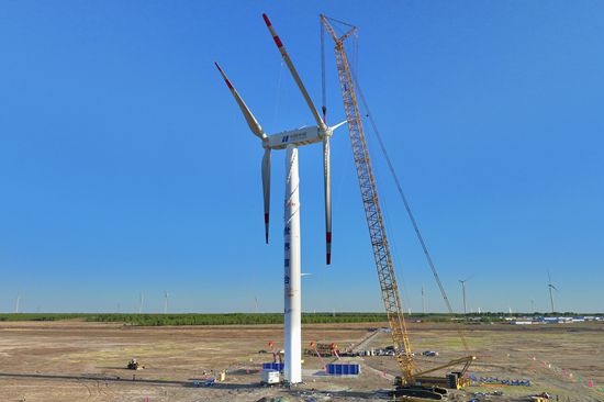 華能自主研制的世界首臺(tái)串列式雙風(fēng)輪風(fēng)機(jī)成功吊裝