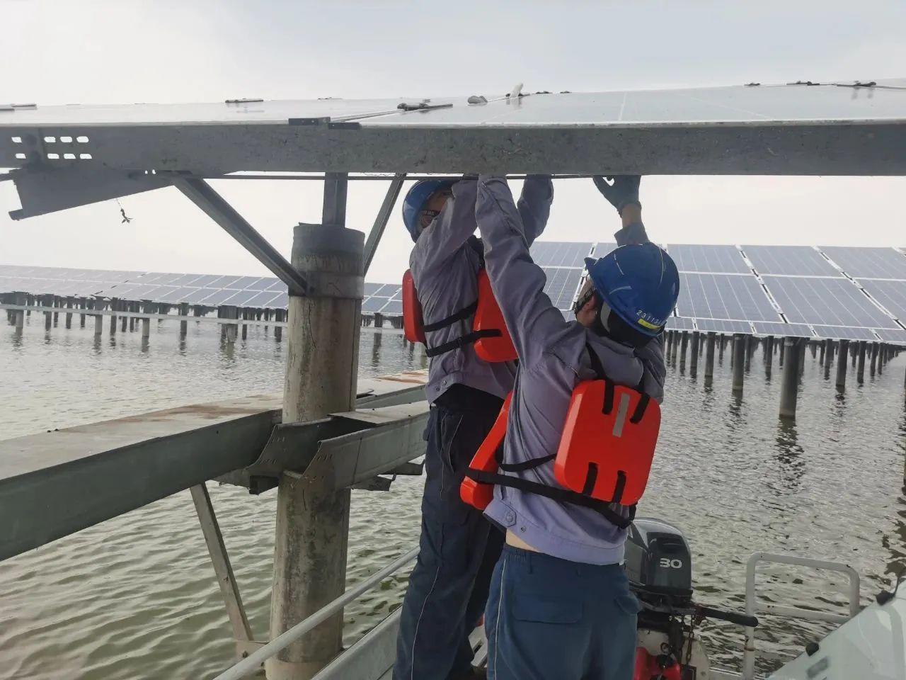 為迎接夏季高溫氣候,中廣核塌西湖光伏電站持續(xù)開展湖區(qū)箱變散熱系統(tǒng)運轉(zhuǎn)情況檢查消缺,保證箱變強制風(fēng)冷系統(tǒng)運行正常,開展散熱系統(tǒng)測試軸流風(fēng)扇更換作業(yè)。堅持檢查整改同步進行,確保設(shè)備處于安全運行,結(jié)合無人機紅外巡視,開展組件消缺更換作業(yè),保證基礎(chǔ)發(fā)電單元發(fā)電效率,不斷夯實設(shè)備安全基礎(chǔ),在迎峰度夏之際,全力做好電力保供工作。