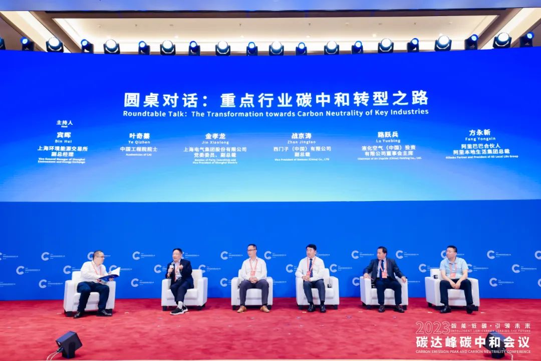 在煙臺碳達峰碳中和會議上,中國工程院院士葉奇蓁就“重點行業(yè)碳中和轉(zhuǎn)型之路”這一主題,與上海電氣集團股份有限公司黨委委員、副總裁金孝龍,西門子(中國)有限公司副總裁戰(zhàn)京濤,液化空氣(中國)投資有限公司董事會主席路躍兵,阿里巴巴合伙人、阿里本地生活集團總裁方永新展開圓桌對話。