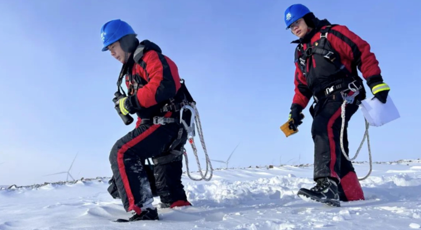 在山西,中國(guó)華電山西公司組織點(diǎn)檢員在雪后開展風(fēng)機(jī)和集電線路巡檢工作。點(diǎn)檢員在零下十幾度的刺骨寒風(fēng)中踩著30厘米深的積雪,連續(xù)3天徒步行走50余公里,累計(jì)排查72基鐵塔,確保第一時(shí)間掌握設(shè)備情況,全力抗擊冰雪挑戰(zhàn)。