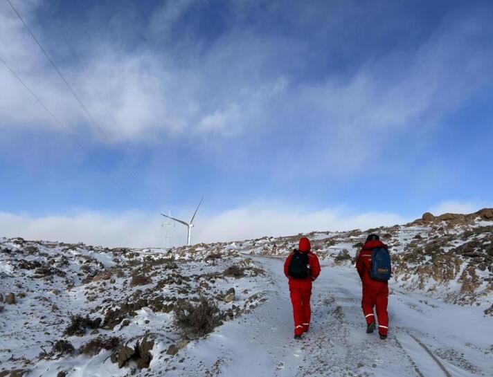 12月以來(lái),華能新能源蒙西分公司都爾勒吉風(fēng)儲(chǔ)電站連續(xù)遭遇多輪降溫暴雪,為保障風(fēng)電機(jī)組持續(xù)安全運(yùn)行,筑牢能源保供防線(xiàn),青年黨員們逆行而上、徒步前往機(jī)位進(jìn)行風(fēng)機(jī)檢修。