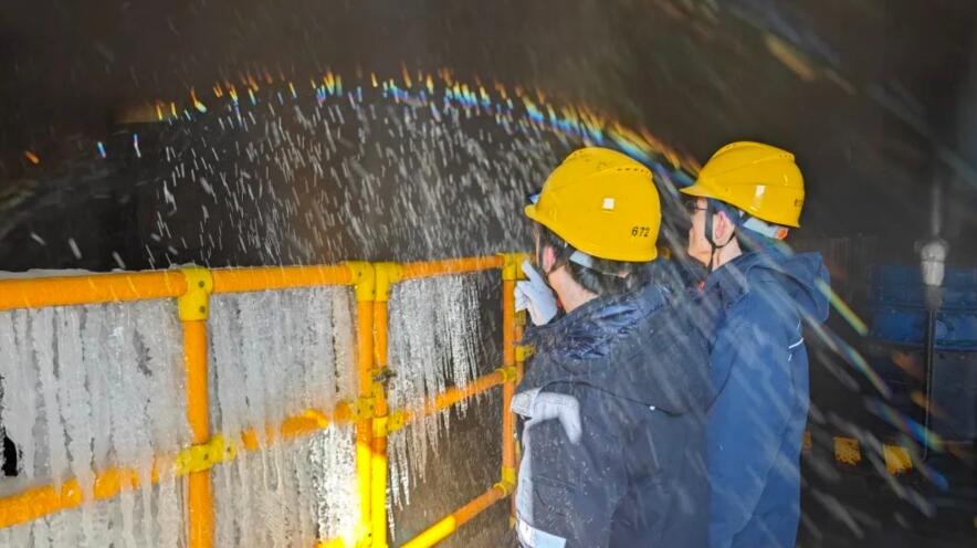周寧抽蓄公司及時(shí)發(fā)布降溫、冰凍、雨雪等預(yù)警信息和風(fēng)險(xiǎn)提示,一線人員堅(jiān)守崗位,對(duì)戶外管道電纜、電氣配電柜等設(shè)備進(jìn)行防凍檢查和增加掃雪頻次,確保大型“充電寶”輸出汩汩綠色電能。邵武能源公司迎“寒”而上,強(qiáng)化燃煤保障,一線人員在零下6度、雪花漫天飛舞的戶外,對(duì)伴熱蒸汽管道、升壓站、冷卻塔等設(shè)備開(kāi)展全方位防寒防凍專(zhuān)項(xiàng)檢查。海拔1348米的寧化雞公崠風(fēng)電場(chǎng)最高積雪達(dá)到20厘米,該場(chǎng)站迅速啟動(dòng)防極端天氣應(yīng)急預(yù)案,提前預(yù)置應(yīng)急力量,運(yùn)用“無(wú)人機(jī)+視頻監(jiān)控+人工特巡”的立體化方式,開(kāi)展風(fēng)機(jī)、線路、升壓站的覆冰積雪情況檢測(cè)。
