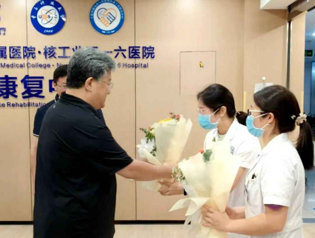余劍鋒一行先后參觀了核工業(yè)四一六醫(yī)院放射科、康復(fù)科、骨科等重點科室,詢問了醫(yī)務(wù)人員工作生活情況,查看了相關(guān)設(shè)施設(shè)備,聽取了醫(yī)院核醫(yī)療綜合學(xué)科群和整體業(yè)務(wù)發(fā)展情況,肯定了醫(yī)院近幾年在承擔(dān)國家核應(yīng)急救援任務(wù)、抗擊新冠疫情、爭創(chuàng)醫(yī)學(xué)科研中心、保障中核人健康等方面作出積極貢獻(xiàn),是集團(tuán)公司戰(zhàn)略部署落地落實的忠誠踐行者。中核集團(tuán)副總經(jīng)濟(jì)師杜吉國,中國核動力研究設(shè)計院、核工業(yè)四一六醫(yī)院主要負(fù)責(zé)人陪同慰問。