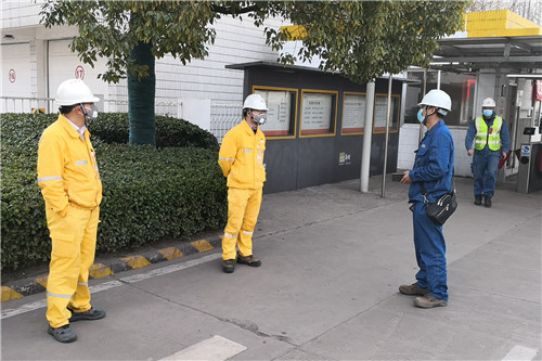 清晨7:00,檢查人員在綜合辦公樓一樓集合。陳超虎對(duì)此次監(jiān)督檢查方式、內(nèi)容、重點(diǎn)及分工進(jìn)行了詳細(xì)布置。隨后,檢查人員分為兩組,對(duì)生產(chǎn)現(xiàn)場(chǎng)疫情防控措施執(zhí)行情況和人員進(jìn)出公司疫情防控措施、人員到崗情況進(jìn)行檢查。