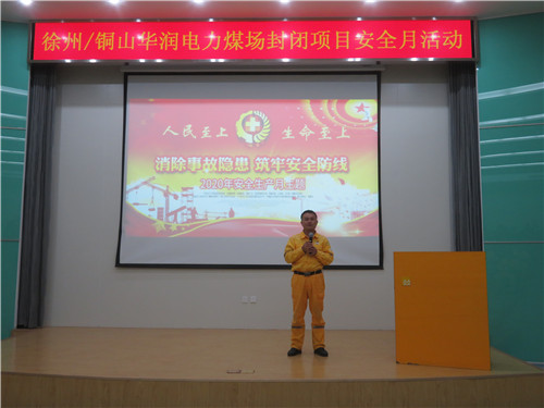6月4日,徐州/銅山華潤(rùn)電力有限公司(以下簡(jiǎn)稱“公司”)煤場(chǎng)封閉項(xiàng)目安全生產(chǎn)月主題活動(dòng)在綜合樓一樓階梯教室舉行,公司技術(shù)總監(jiān)張峰、華潤(rùn)電力江蘇大區(qū)EHS部毛俊杰、公司EHS部部長(zhǎng)杜長(zhǎng)明、技術(shù)部副部長(zhǎng)張建華等人到場(chǎng)參加。