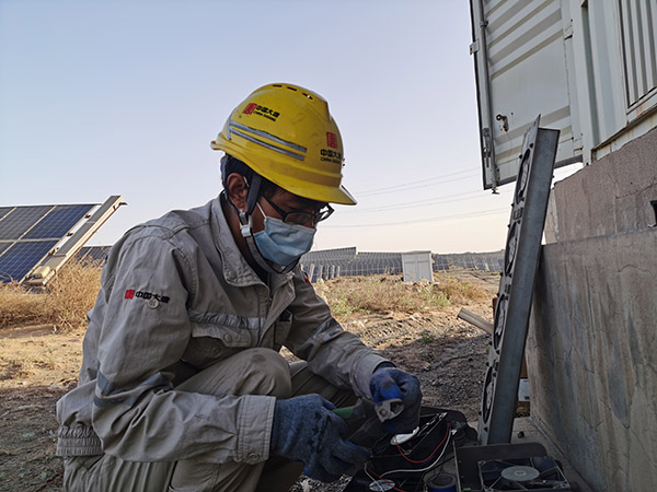 6月是光伏發(fā)電的高峰期,但環(huán)境溫度高、地域風(fēng)沙大,導(dǎo)致現(xiàn)場逆變器室積塵嚴(yán)重,設(shè)備散熱效果不佳,部分散熱風(fēng)扇受當(dāng)?shù)仫L(fēng)沙影響,無法正常工作,逆變器室因溫升限負(fù)荷報(bào)警,一定程度上制約了光伏板正常發(fā)電。“難題”擺在眼前,卻難不倒這群大漠電站的年輕人,為不影響峰值輻照的發(fā)電量,他們搶在太陽升起前便開始動(dòng)身,備好備件、持好工具,快速趕到現(xiàn)場,一頓“快查、快拆、快換”靈活操作,2小時(shí)完成了40多個(gè)堵塞風(fēng)扇的更換工作。到太陽高照的時(shí)候,他們?cè)俅胃艾F(xiàn)地檢查和處理低效發(fā)電組串,解決處理限制發(fā)電量的突發(fā)異常。一次次地現(xiàn)場排查、問題處理促進(jìn)了發(fā)電量穩(wěn)步提升。
