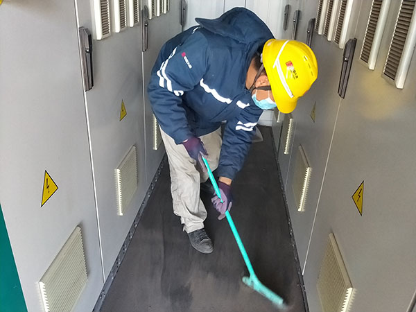 運維人員在清理逆變器室灰塵