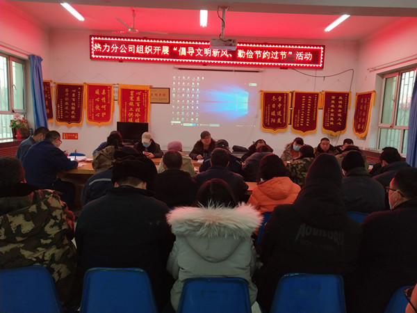 中國電力網(wǎng)訊 為貫徹落實習近平總書記關(guān)于厲行節(jié)約、反對浪費特別是制止餐飲浪費行為的重要指示精神。2月9日,新疆兵團一師電力阿拉爾熱力分公司組織開展“倡導(dǎo)文明新風、勤儉節(jié)約過節(jié)”活動。