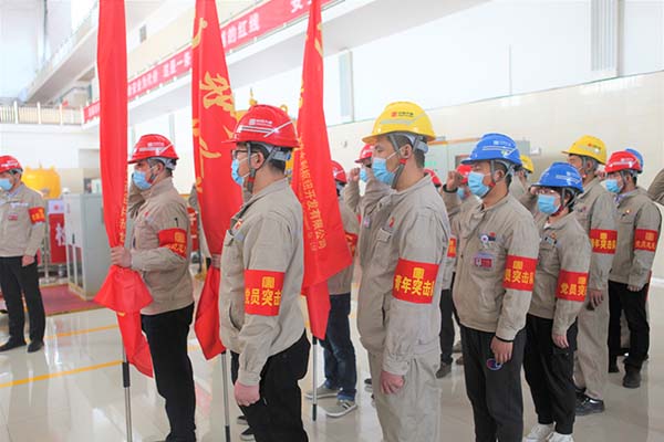 活動中,該公司黨委委員、紀委書記、工會主席李強同志宣讀了公司黨委印發(fā)《關于在1號機組A級檢修工作中充分發(fā)揮黨團組織作用的通知》的文件要求。公司黨委書記、執(zhí)行董事、總經(jīng)理薛福林同志為“1號機組A級檢修”黨員突擊隊、黨員服務隊、青年突擊隊分別授旗。生產(chǎn)一線黨員代表、青年代表分別圍繞1號機組A級檢修工作實際作了《黨員承諾》《青年承諾》。公司黨委委員、副總經(jīng)理錢明雄同志帶領廣大黨員在檢修現(xiàn)場面向鮮紅的黨旗重溫了入黨誓詞。