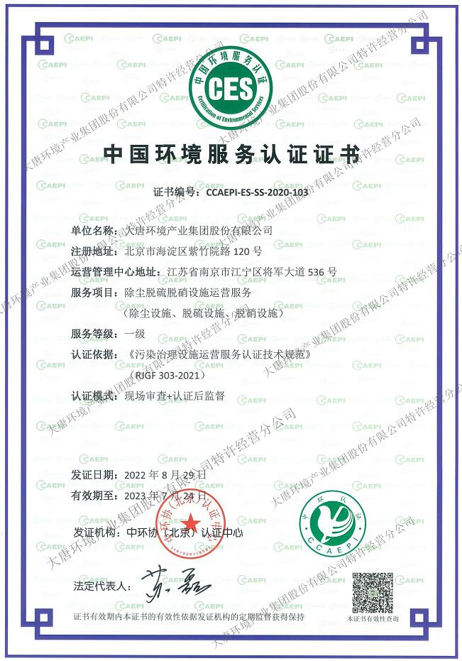 中國(guó)電力網(wǎng)訊 9月2日,特許經(jīng)營(yíng)分公司獲得中環(huán)協(xié)(北京)認(rèn)證中心頒發(fā)的新版“除塵脫硫脫硝設(shè)施運(yùn)營(yíng)服務(wù)”一級(jí)服務(wù)認(rèn)證證書(shū),圓滿完成中國(guó)環(huán)境服務(wù)認(rèn)證資質(zhì)督查工作。
