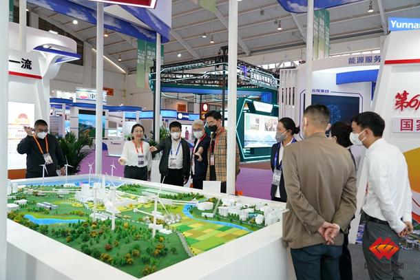 國(guó)家能源集團(tuán)云南公司展區(qū)打造了包括“創(chuàng)建世界一流示范企業(yè)、 履行央企使命擔(dān)當(dāng)、促進(jìn)轉(zhuǎn)型發(fā)展、落實(shí)“雙碳”目標(biāo)、助力南亞高質(zhì)量發(fā)展、滇企通力鑄就輝煌”等多個(gè)板塊。展區(qū)中央“國(guó)家能源集團(tuán)生態(tài)能源綜合體沙盤(pán)模型”吸引眾多來(lái)賓駐足觀看,紛紛贊嘆不已。整個(gè)沙盤(pán)模型展現(xiàn)了國(guó)家能源集團(tuán)服務(wù)國(guó)家綠色發(fā)展戰(zhàn)略,力爭(zhēng)成為綜合能源服務(wù)的引領(lǐng)者、城市固廢處置的終結(jié)者、鄉(xiāng)村振興戰(zhàn)略的踐行者的責(zé)任擔(dān)當(dāng),是本屆展會(huì)最大的亮點(diǎn)。