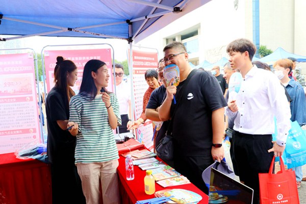 圖為工作人員正在為群眾解答問題