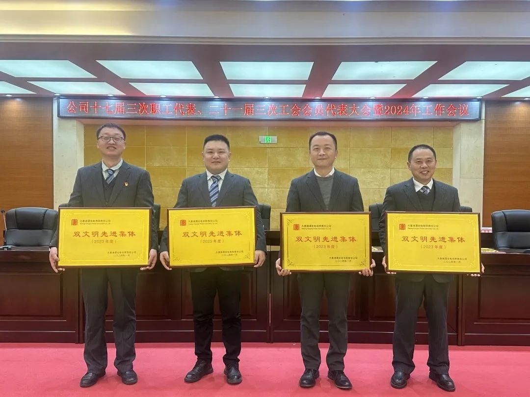 鄧仙桂宣讀了公司2023年度雙文明先進集體、雙文明工作模范、雙文明崗位標兵表彰決定,公司領導為先進集體和個人現場頒獎。