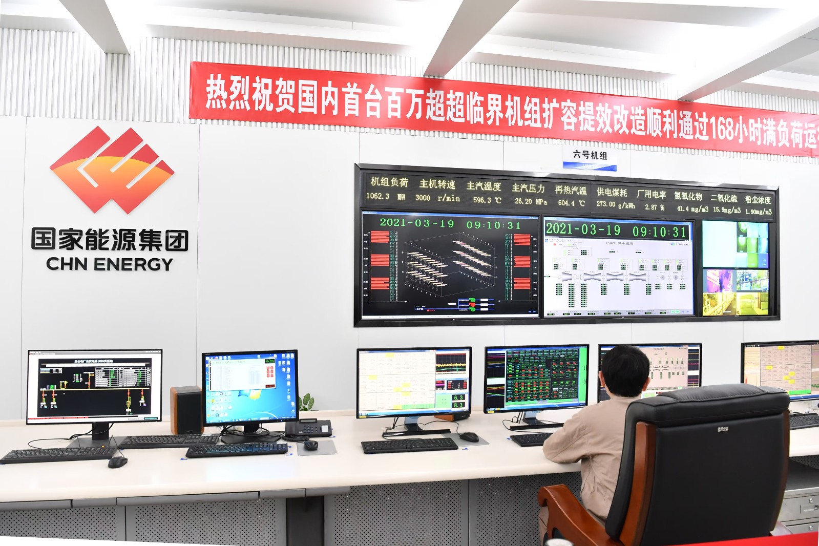 2020年9月,中國政府提出實(shí)現(xiàn)“雙碳”目標(biāo),小李的創(chuàng)新步伐更加堅(jiān)定。2020年10月,首臺(tái)6號(hào)1000兆瓦機(jī)組實(shí)施改造,而更換汽輪機(jī)高壓缸是重頭戲。“高壓缸重達(dá)120噸,體積接近一個(gè)集裝箱。”小李如是說。要把一個(gè)龐然大物吊到17米高的汽機(jī)平臺(tái),精準(zhǔn)放置到軸承座上,各個(gè)環(huán)節(jié)必須準(zhǔn)確無誤。整整7個(gè)日夜,小李蹲守現(xiàn)場,調(diào)整參數(shù)、處理缺陷。最終,機(jī)組順利并網(wǎng)。期間,該機(jī)組首次采用國能智深EDPF-NT+系統(tǒng),讓百萬級(jí)煤電機(jī)組DEH控制系統(tǒng)用上“中國腦”。改造后,兩臺(tái)1000兆瓦機(jī)組供電煤耗下降3.1克/千瓦時(shí),增容100兆瓦,每年可增發(fā)電量5億千瓦時(shí)。