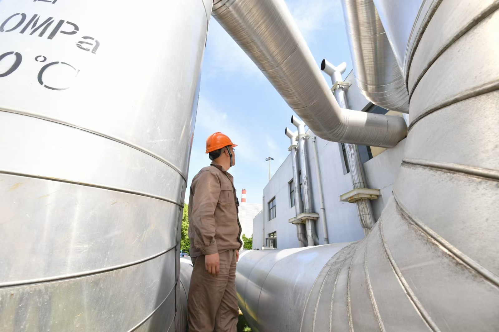 圖為北侖電廠技術(shù)人員精心檢查供熱管線確保安全