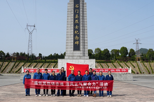中國電力網(wǎng)訊 (通訊員:盧雅麗)清明時節(jié)寄哀思,豐碑永駐鑄忠魂。4月1日,陜煤石門發(fā)電公司機關(guān)黨支部組織全體黨員赴石門縣烈士陵園開展“緬懷英烈鑄忠魂 清風(fēng)正氣聚合力”清明祭英烈活動,引導(dǎo)全體黨員銘記歷史,傳承紅色基因,凝聚奮進力量。