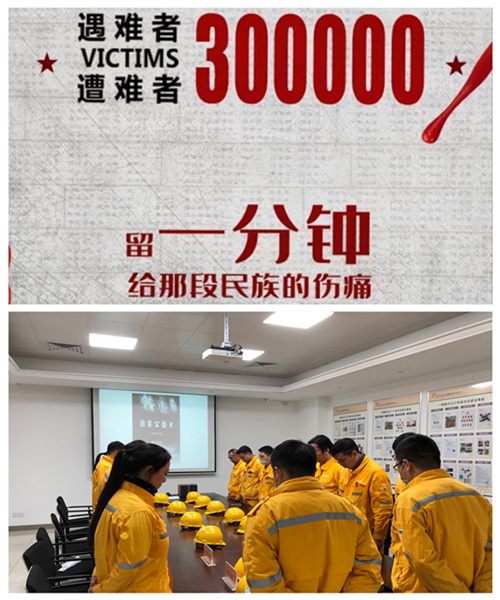 2020年12月13日,是第七個南京大屠殺死難者國家公祭日。南京化學工業(yè)園熱電有限公司(以下簡稱公司)現(xiàn)場運行人員在班組安全活動開始前,為緬懷同胞,全體起立默哀一分鐘。
