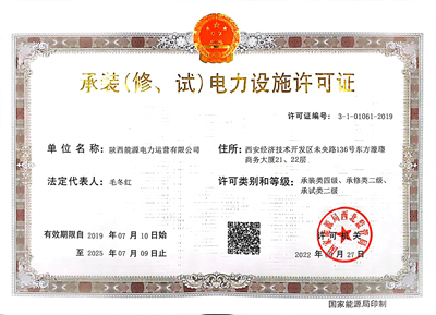 陜投電力運(yùn)營《承裝(修、試)電力設(shè)施許可證》升級(jí)為二級(jí)資質(zhì)