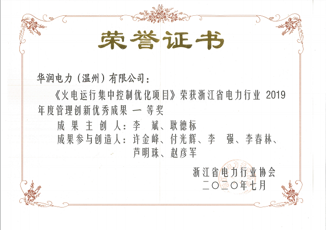 中國電力網(wǎng)訊 近日,由浙江省電力行業(yè)協(xié)會主辦的2019年度管理創(chuàng)新優(yōu)秀成果評審結(jié)果揭曉,華潤溫州電廠《火電運行集中控制優(yōu)化項目》從200余項創(chuàng)新成果中脫穎而出,榮膺一等獎。