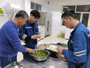 節(jié)日期間,現(xiàn)場(chǎng)職工們一起包餃子、貼春聯(lián),共同烹飪?cè)趰徛毠さ?ldquo;團(tuán)圓年夜飯”,為現(xiàn)場(chǎng)帶來(lái)十足“年味兒”。