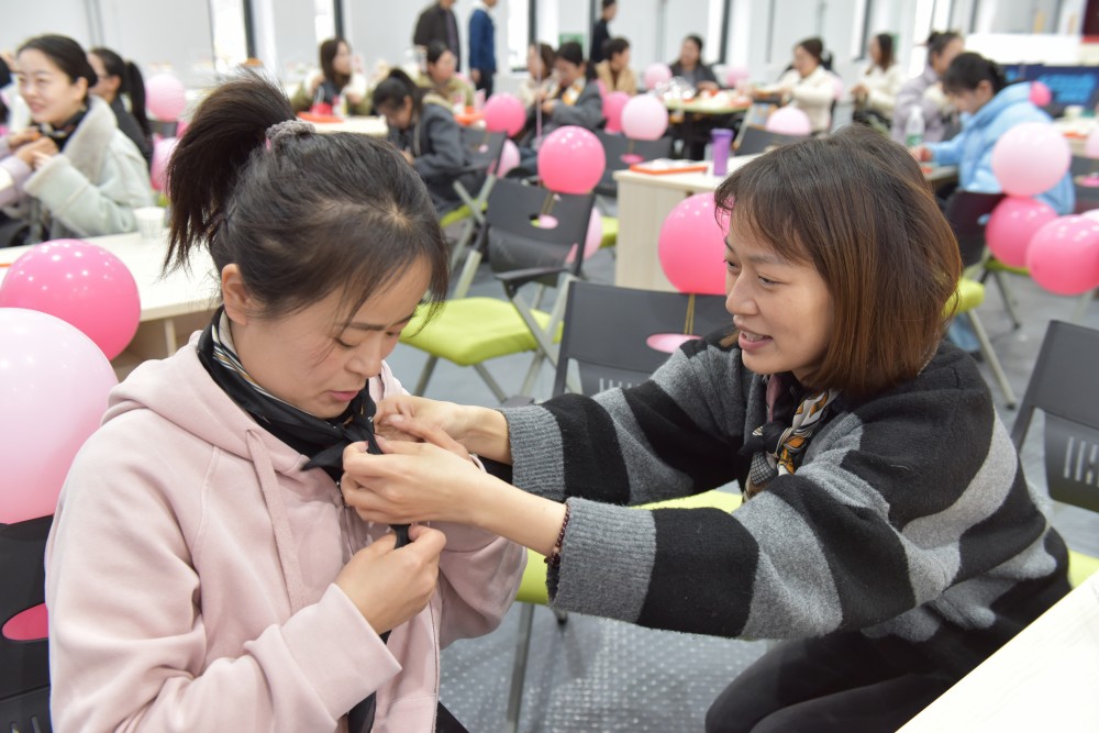 當(dāng)天的培訓(xùn)分職場(chǎng)禮儀賦能、清雅妝造課堂、服裝搭配指南三個(gè)部分。幾位老師通過(guò)專(zhuān)業(yè)的視角,針對(duì)女職工的需求,現(xiàn)場(chǎng)示范指導(dǎo),向她們傳授實(shí)用的美麗“秘籍”。女職工們紛紛拿出化妝品和絲巾跟隨老師實(shí)操實(shí)練,現(xiàn)場(chǎng)氣氛輕松愉悅,笑聲不斷。