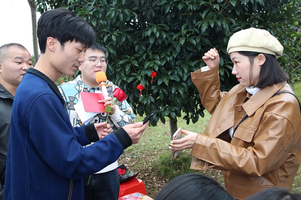 青年聯(lián)誼活動在熱情洋溢的氛圍中拉開了序幕?;顒觾热莅ㄗ晕医榻B、才藝展示、有獎?chuàng)尨?、現(xiàn)場分組、游戲環(huán)節(jié)和玫瑰結緣牽手等。幾輪有獎競答,預熱了活動現(xiàn)場。隨后,各單位隊長開始挑選隊員,進行分組,分成了紅、藍、橙、紫4組。在主持人的帶動下,每組以競賽的方式完成“你演我猜”和“雙龍戲珠”等一系列豐富多彩的游戲環(huán)節(jié),青年男女之間進行了一次次的互動交流和團隊協(xié)作,緩解了初次見面的緊張羞澀,也讓大家在歡聲笑語中,拉近距離、加深了解,將現(xiàn)場氣氛推向了一個又一個高潮。