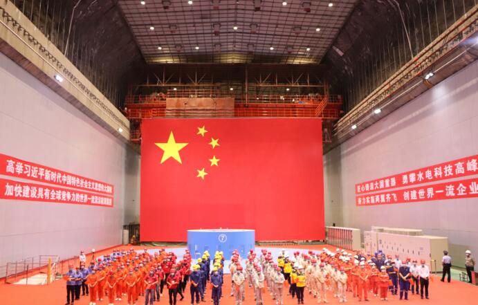 2020年5月22日,從進水口蜂擁而入的金沙江水通過蝸殼將自己狠狠得拍打在水輪機上,整個七號機組緩緩轉動,龐大而冰冷的機器開始展現(xiàn)出生命的活力。
