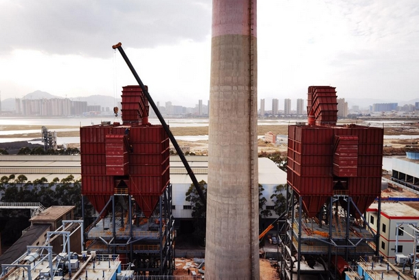 中國(guó)電力網(wǎng)訊 11月16日,福建晉江熱電公司鍋爐脫硫除塵改造項(xiàng)目完成封頂關(guān)鍵節(jié)點(diǎn),脫硫塔與布袋除塵器形成貫通。