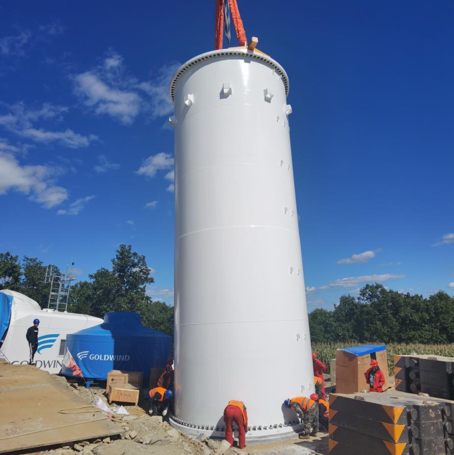 中國(guó)電力網(wǎng)訊 9月1日12時(shí)59分,隨著下端直徑4.86米,上端直徑4.85米,長(zhǎng)12米,重87.3噸的底段風(fēng)機(jī)塔筒順利固定就位,標(biāo)志著大唐黑龍江發(fā)電有限公司黑河孫吳風(fēng)電平價(jià)上網(wǎng)項(xiàng)目正式進(jìn)入風(fēng)機(jī)吊裝階段。