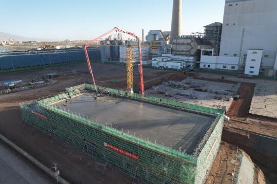 中國電力網(wǎng)訊(通訊員 周香香)12月11日下午,隨著混凝土從泵車管道輸出,鍋爐補給水處理站頂板澆筑工作徐徐展開,本次澆筑的梁、板、樓梯采用C35混凝土,柱采用C40混凝土,柱、梁混凝土保護層厚度為20mm,板混凝土保護層厚度為15mm,澆筑量共計450立方米,歷時7小時澆筑完成。