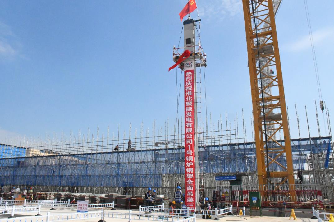 8月1日,中國(guó)能建建筑集團(tuán)承建的淮北國(guó)安電廠二期2×660兆瓦超超臨界機(jī)組項(xiàng)目1號(hào)鍋爐鋼架全面吊裝,標(biāo)志著機(jī)組進(jìn)入安裝階段。