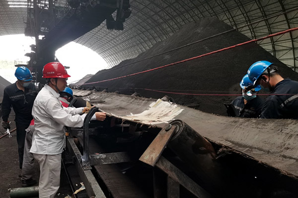 在煤場,該公司燃料檢修人員按照皮帶粘接工藝規(guī)范要求,正在進(jìn)行一期3號皮帶接頭膠接,管理人員到崗到位,嚴(yán)把質(zhì)量關(guān)。