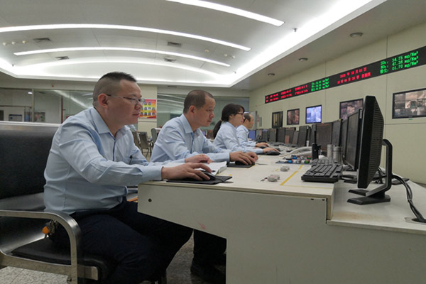 集控室,該公司運(yùn)行人員在認(rèn)真監(jiān)盤、精心操作,加強(qiáng)對機(jī)組重要參數(shù)的運(yùn)行監(jiān)控,確保機(jī)組安全、環(huán)保、經(jīng)濟(jì)運(yùn)行。