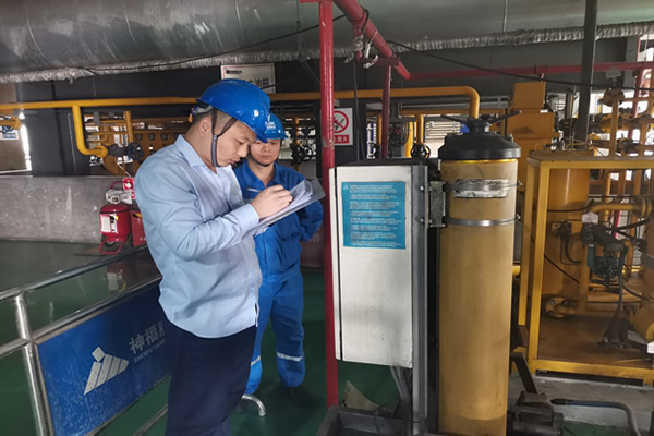 汽機(jī)零米層,該公司檢修部汽機(jī)點(diǎn)檢員正在對6號機(jī)組EH油濾油工作進(jìn)行過程監(jiān)督、檢查、簽證,保證油質(zhì)合格。