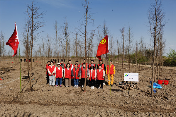 本次活動由來自江北新區(qū)財政局、建設(shè)投資集團、綜合行政執(zhí)法總隊黨員代表,新材料科技園領(lǐng)導(dǎo)及紀工委、機關(guān)、團工委、公用事業(yè)公司、市政綠化公司黨員、團青代表共計百余人參加。植樹地點在緊鄰公司的岳子河,16塊責(zé)任區(qū)順著道路兩旁依次排開,我公司青年員工代表身著鮮亮的工裝,在春日的暖陽下顯得格外奪目。聽從園區(qū)團工委的指揮,我公司青年代表擼起袖子就是干,一人挖坑、一人扛樹、一人扶樹、一人填土。從烈日當(dāng)空干到落日余暉,對他們來說好像就是一眨眼的工夫,一望無際的荒地上像是插上了百歲老人的生日蠟燭,兩人多高的樹木帶著點點新芽,無人問津的土地?zé)òl(fā)出了盎然生機。